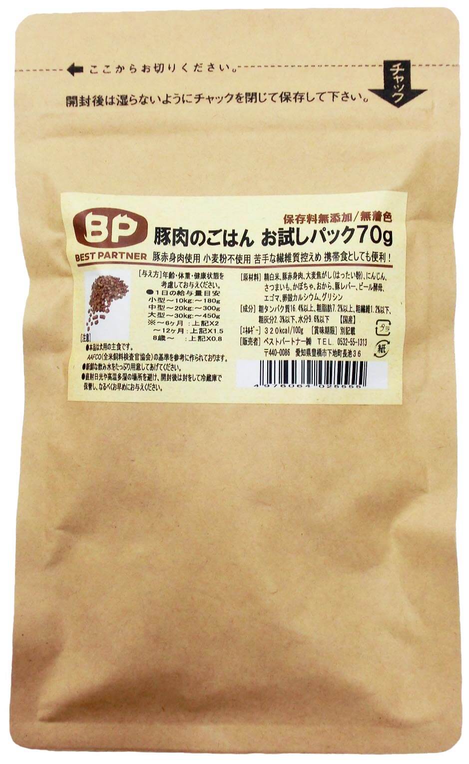 豚肉のごはん 2024 7/25 豚肉のごはん スクロールできます 規 格450gお試しパック70gJAN49760640157234976064021144原材料精白米、豚赤身肉、大麦焦がし(はったい粉)、にんじん、さつまいも、かぼちゃ、おから、豚レバー、ビール酵母、エゴマ、卵殻カルシウム、グリシン 商品説明 豚赤身肉を使用し、エネルギー代謝促進・免疫力向上に配慮 小麦粉不使用 ワンちゃんの苦手な繊維質を少な目に抑えました。 保存料無添加・無着色 ごはん 豚